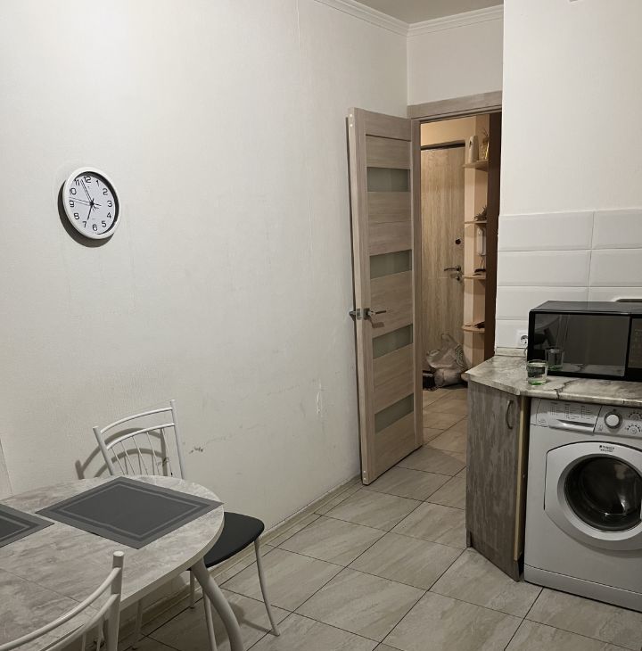 В квартире есть все необходимое для комфортного проживания. Сделан качественный евроремонт. Кухня оснащена мебелью и современной техникой, включая холодильник и стиральную машину, микроволновку. В комнате также имеется вся необходимая мебель. Санузел совмещенный, с ванной. Есть