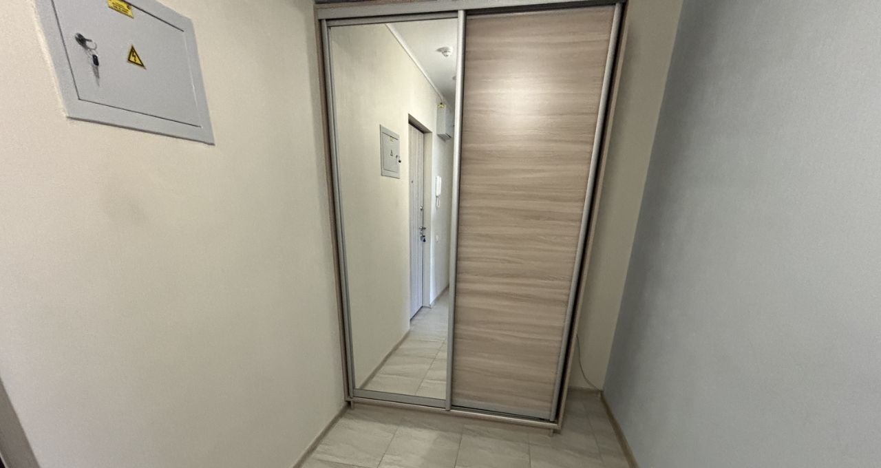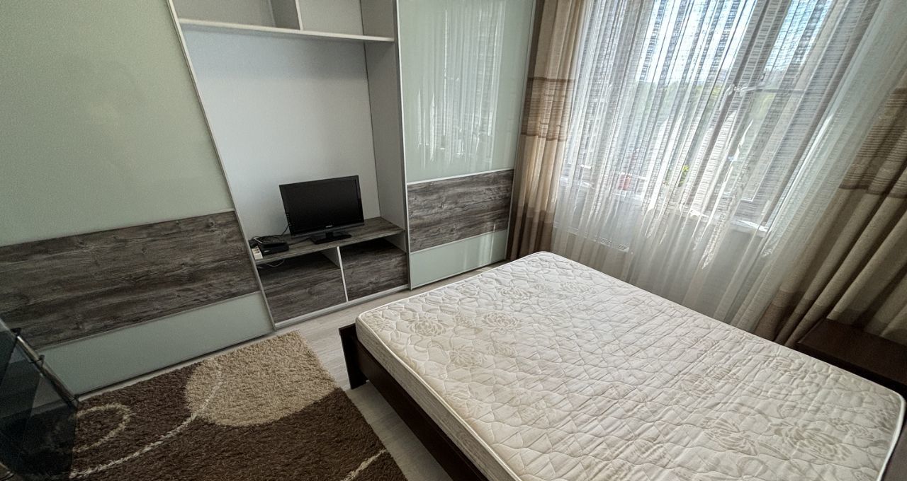 Кровать с ортопедическим матрасом, спальное место 160*200, две прикроватные тумбочки, шкаф-купе. Диван на кухне (дополнительное спальное место 140*200). Стильный кухонный гарнитур со встроенной бытовой техникой. Холодильник.Микроволновая печь.Посуда. Шкаф-купе в прихожей.
