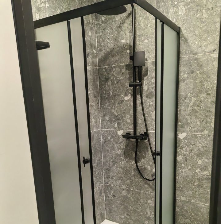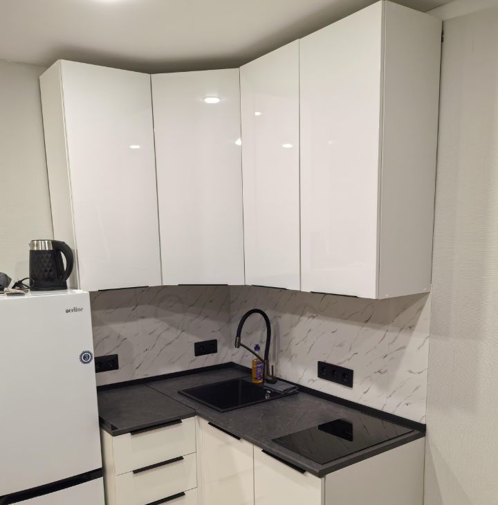 Кухня современная, оснащена всей необходимой техникой, включая плиту. Санузел совмещённый, оформлен стильной плиткой, установлена душевая кабина.