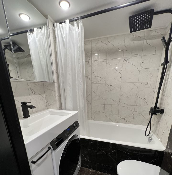 Стиральная машинка с функцией сушки, что очень удобно, не нужно использовать дополнительное место для сушки белья.