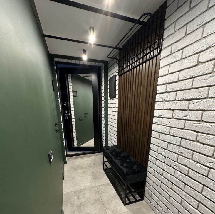 Двери от застройщика были внутреннего типа открывания, что съедало довольно много пространства, учли этот факт и дверь открывается в подъезд.
