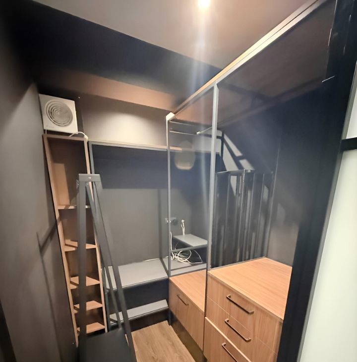 На втором этаже имеется отдельный санузел и гардеробная, гардеробная достаточно вместительная, а в санузле имеется дополнительный шкаф для хранения.