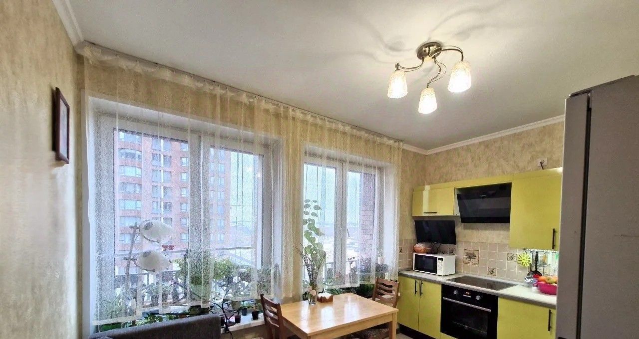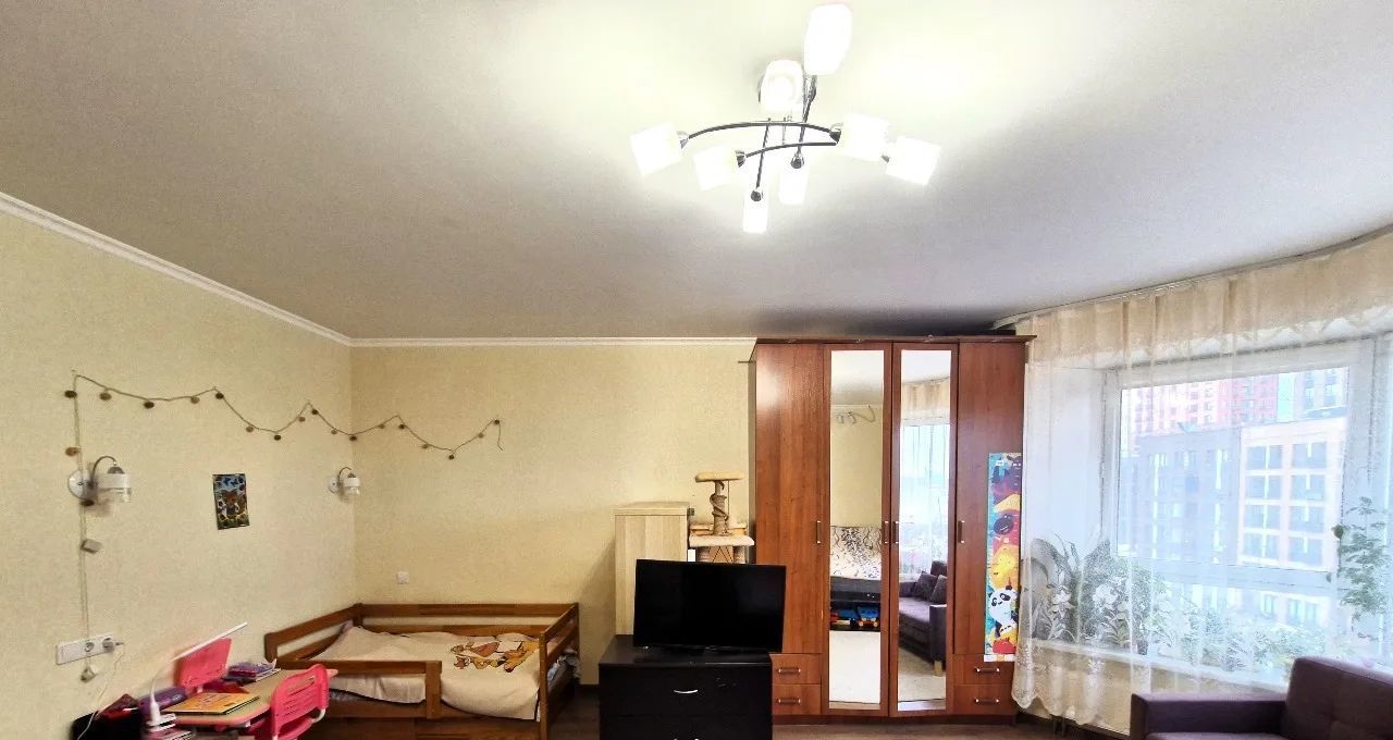 Просторная светлая однокомнатная квартира. Большая кухня, светлая комната, за счёт эркера много света. На кухне и в ванной теплые полы.