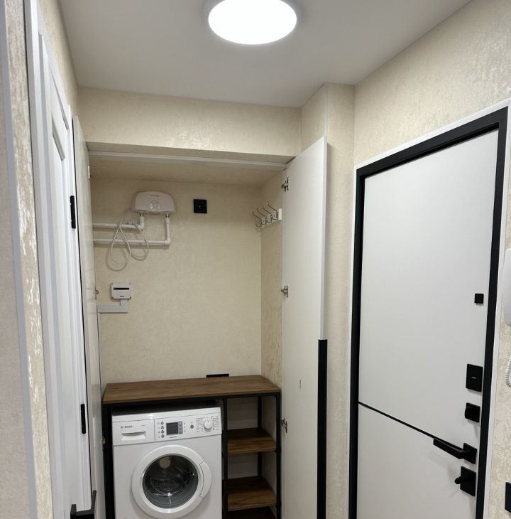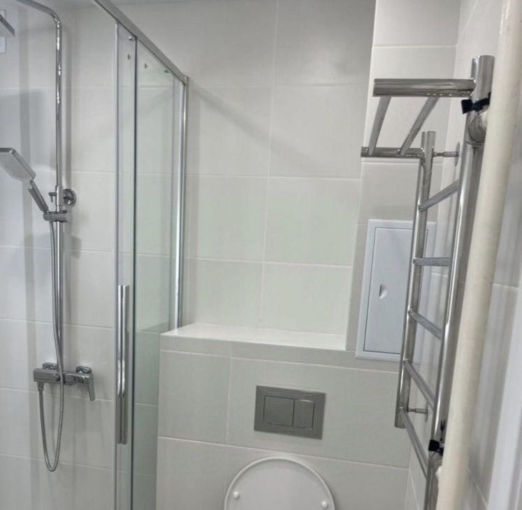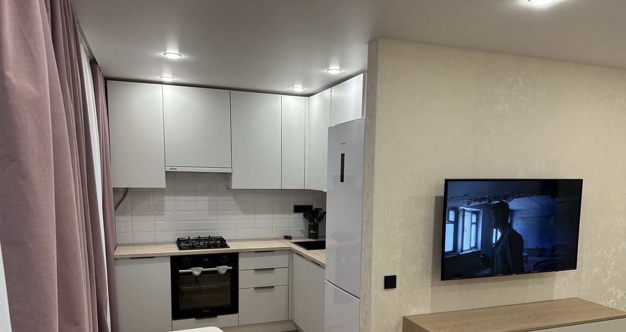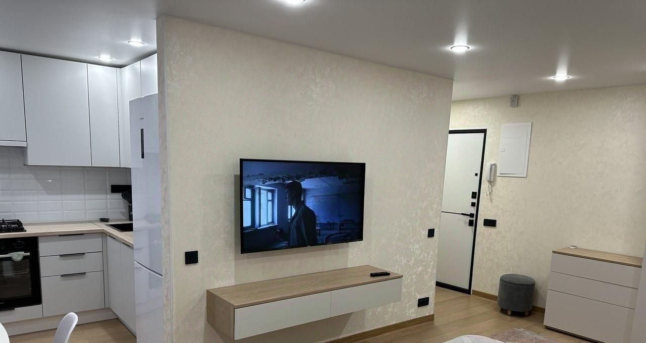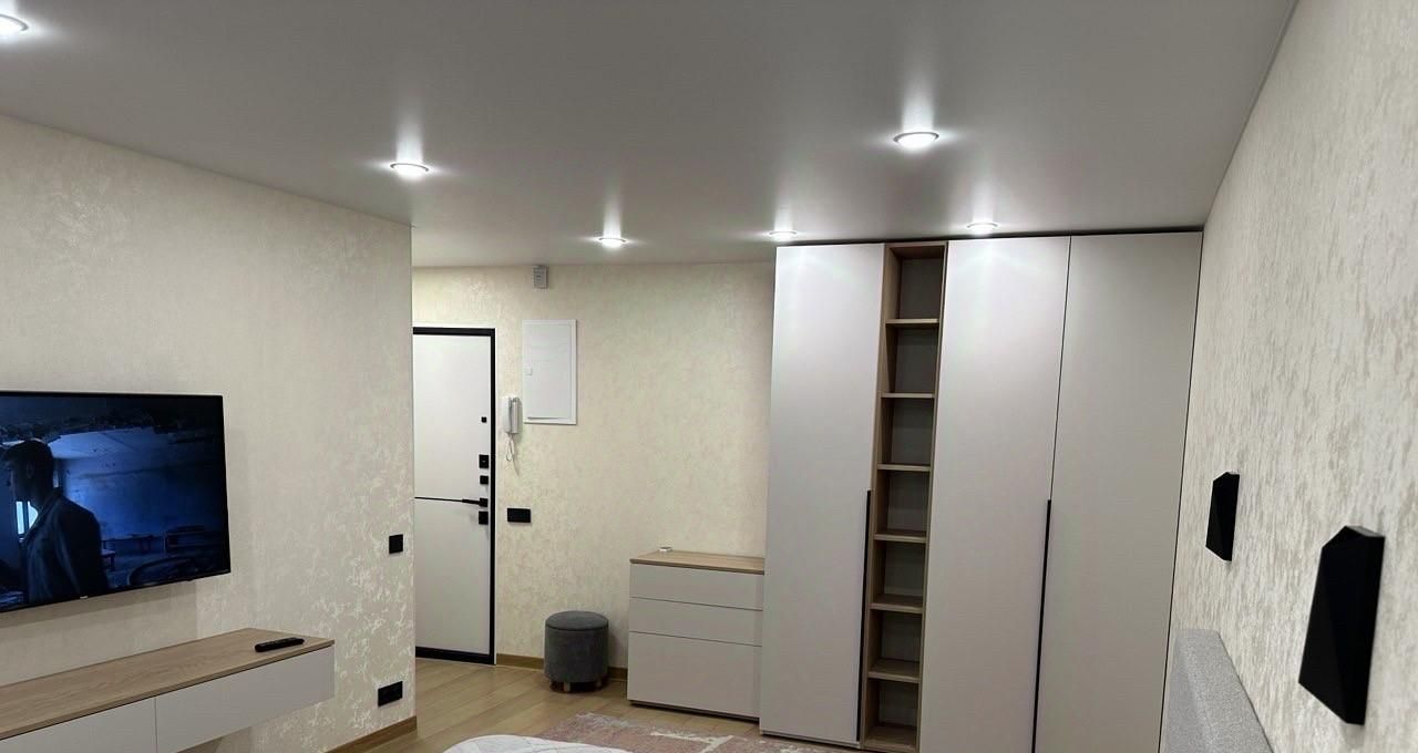 В квартире выполнен дизайнерский ремонт. Просторная комната с мебелью, на уютной кухне также есть необходимая мебель. Для вашего удобства в квартире установлена современная техника: кондиционер, холодильник, посудомоечная машина, телевизор и стиральная машина. Санузел совмещённый, оборудован душевой кабиной. Интернет подключен, поэтому можно сразу начать пользоваться.