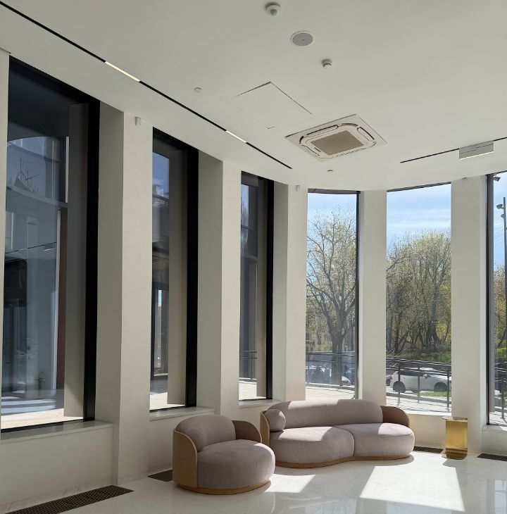Лобби с дизайнерской отделкой премиум класса. Консьерж-сервис. Закрытый двор с ландшафтным дизайном. Подземный паркинг. В ближайшее время в комплексе будет открыт премиальный фитнес клуб с бассейном.