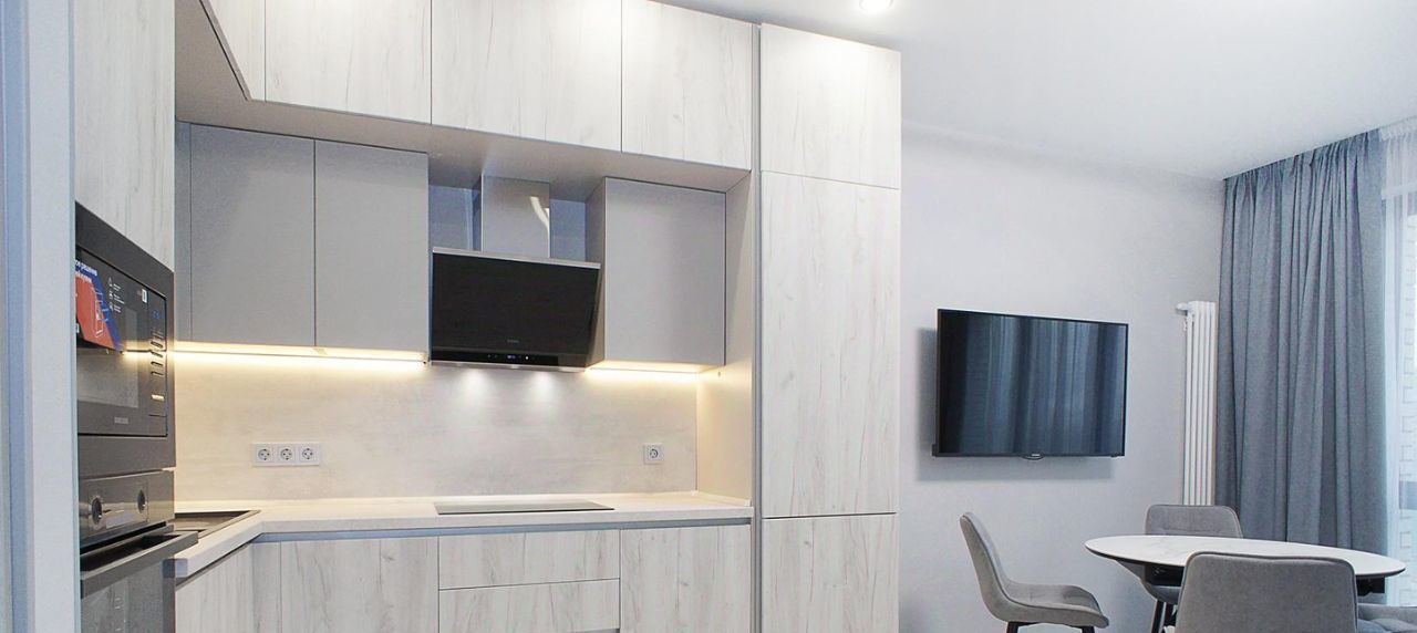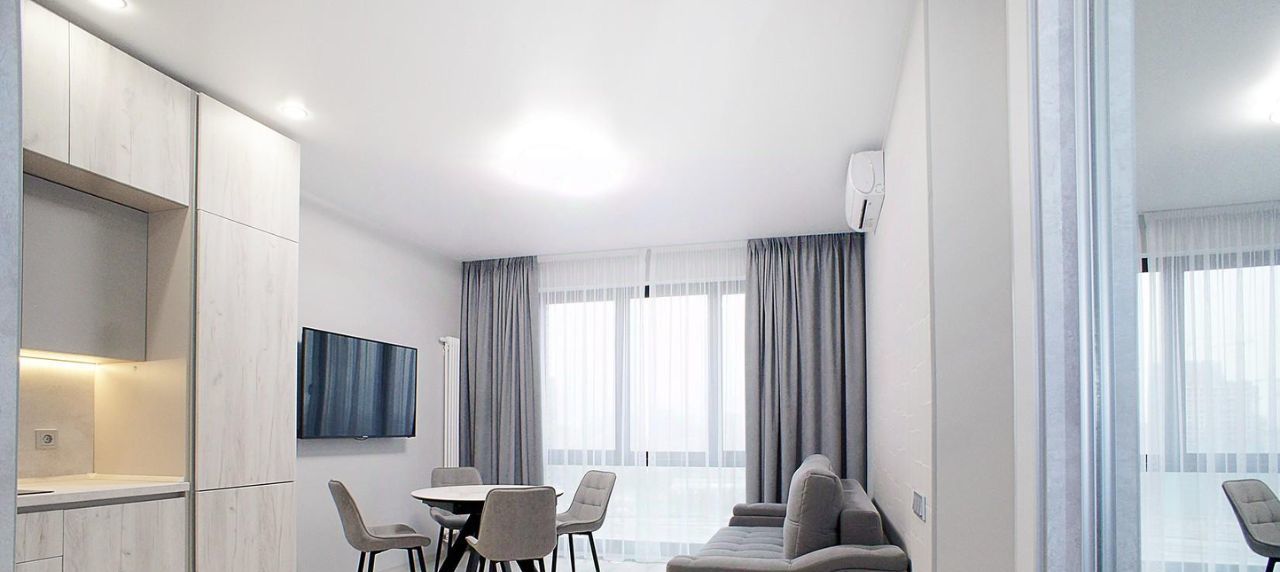 Красивая, СТИЛЬНАЯ квартира с ДИЗАЙНЕРСКИМ ремонтом в ЖК бизнес-класса "Павелецкая Сити" (корпус "ЧАРЛИ"). Планировки - "евроДВУШКА": ПРОСТОРНАЯ кухня-гостиная (20 кв.м) и ИЗОЛИРОВАННАЯ спальня (12 кв.м) . Кухня полностью укомплектована ВСТРОЕННОЙ бытовой техникой (в т.ч. ПОСУДОМОЕЧНОЙ МАШИНОЙ). Комфортная зона гостиной с РАСКЛАДНЫМ диваном. В спальне - БОЛЬШАЯ 2-х сп. КРОВАТЬ (160х200 см), ВМЕСТИТЕЛЬНЫЙ шкаф. КОНДИЦИОНЕР (и в гостиной зоне, и в спальне). ЖК ТВ. Санузел оборудован по евростандарту.