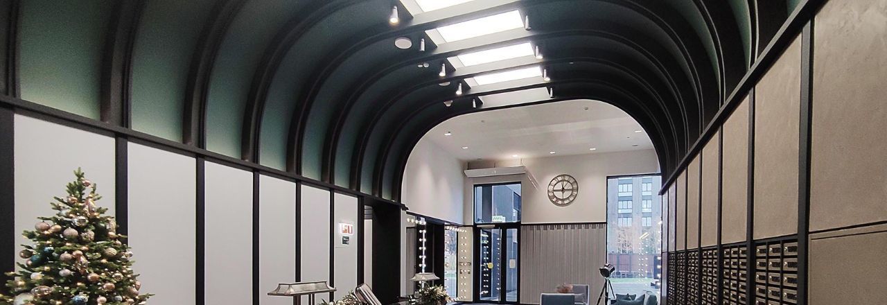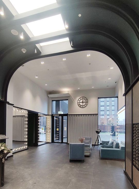 Просторное, с ярким интерьером, лобби (сквозной выход во двор и на улицу). Сервис-КОНСЬЕРЖ. Концепция инфраструктуры ЖК - "Город в городе": все необходимое для жизни на первых этажах: КАФЕ, СУПЕРМАРКЕТЫ, салоны красоты и тп. Во дворе - зоны отдыха и спортивные площадки. На территории ЖК есть подземный ПАРКИНГ. Въезд на территорию через ШЛАГБАУМ.