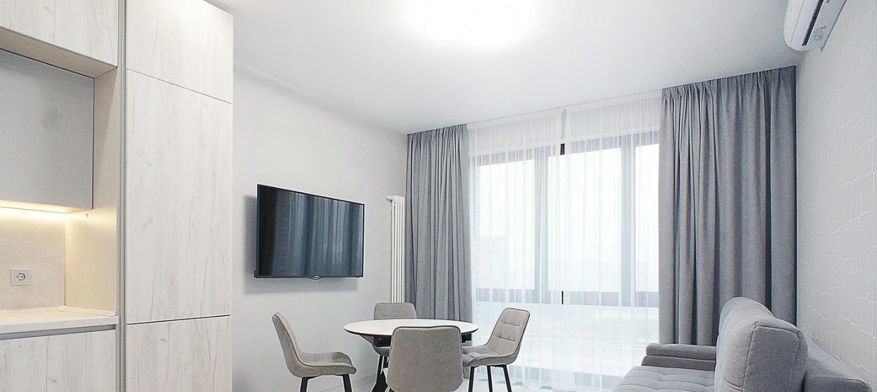 ГОТОВА к показам и заселению. СТИЛЬНАЯ квартира в ЖК бизнес-класса "Павелецкая Сити" (корпус "ЧАРЛИ"). Планировка - "евроДВУШКА": ПРОСТОРНАЯ кухня-гостиная (20 кв.м) и ИЗОЛИРОВАННАЯ спальня (12 кв.м). Кухня полностью укомплектована ВСТРОЕННОЙ бытовой техникой (в т.ч. ПОСУДОМОЕЧНОЙ МАШИНОЙ). Комфортная зона гостиной с РАСКЛАДНЫМ диваном. В спальне - БОЛЬШАЯ 2-х сп. КРОВАТЬ (160х200 см), ВМЕСТИТЕЛЬНЫЙ шкаф. КОНДИЦИОНЕР (и в гостиной зоне, и в спальне). ЖК ТВ. Санузел оборудован по евростандарту.