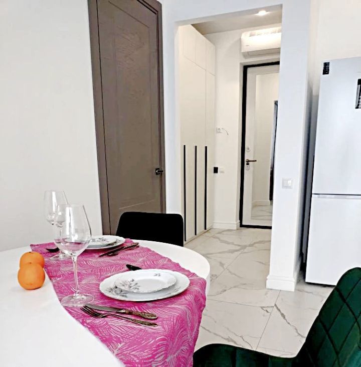 Стильная светлая просторная 1-комнатная квартира с гардеробной, качественным ремонтом и панорамным видом на утреннее восходящее солнце. Сдается впервые. Депозит разобьем на 2-3 месяца.