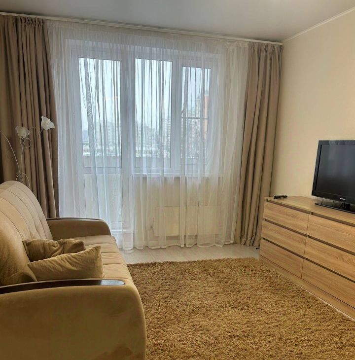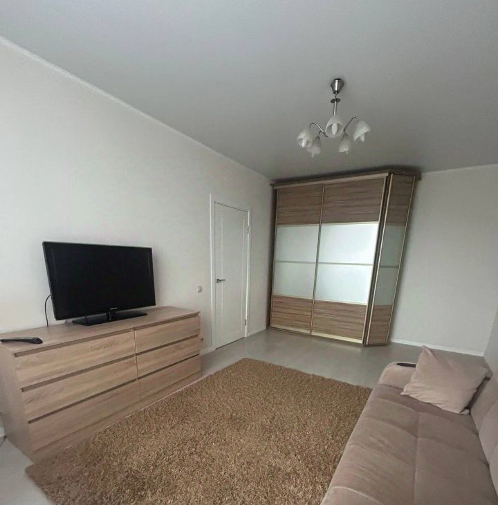 В квартире есть все необходимое для комфортной жизни: современная мебель на кухне и в комнате, кондиционер, холодильник, телевизор и стиральная машина.