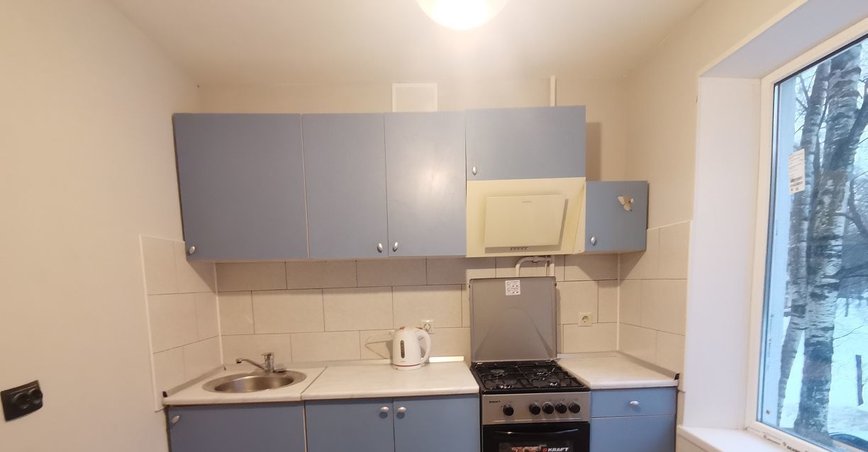 В наличии только то, что на фото: кухонный гарнитур с вытяжкой, стиральная машина, плита, холодильник, стол обеденный + стулья.