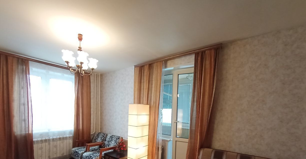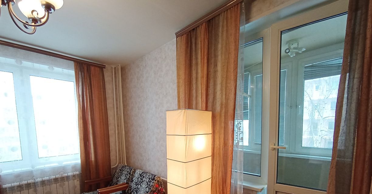 Комната с двумя окнами, очень светлая, теплая. Удобный раскладной диван, телевизор, утепленная застеклённая лоджия сделанная как рабочий кабинет.