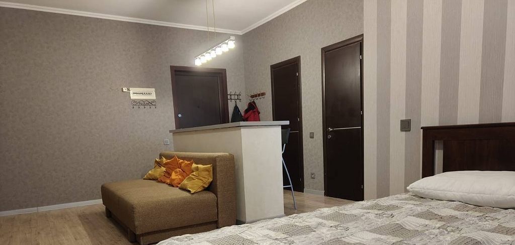 Новый дом. Высокие потолки. Квартира после ремонта в Отличном состоянии с полным набором мебели и бытовой техникой. Сдаётся на Длительный срок. Рассмотрят строго Адекватных и спокойных жильцов Одиночек или Пару без детей. Животные не приемлемы. Депозит можно разбить на 2 части. Из дополнительных платежей Вода и Электричество по счетчикам.