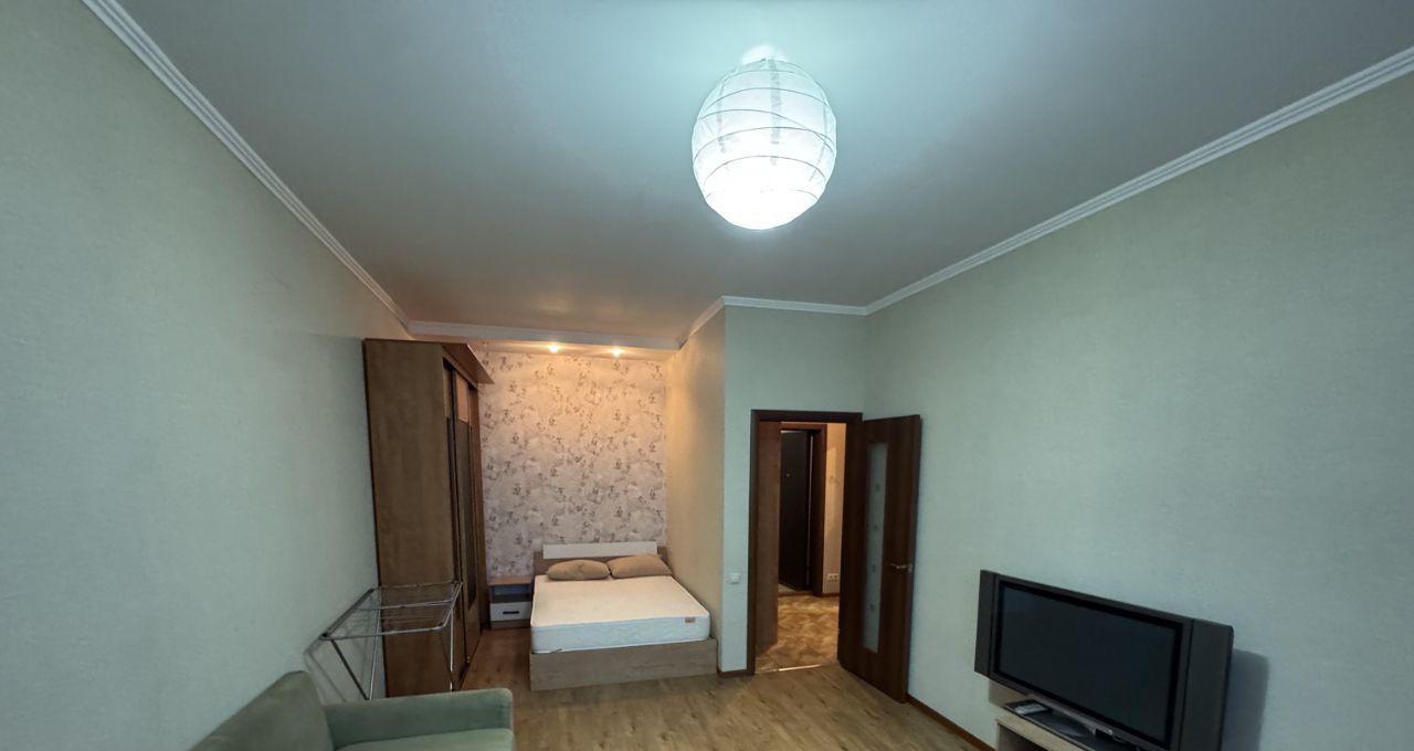 В квартире вся мебель и техника есть включая ТВ и ПММ, в комнате двуспальная кровать, диван, шкаф, ТВ, столик рабочий, на кухне из мягкой мебели диванчик. Готова к комфортному проживанию. Сан узел совмещенный евростандарт с глубокой душевой кабинкой. Лоджия застеклённая с ремонтом.