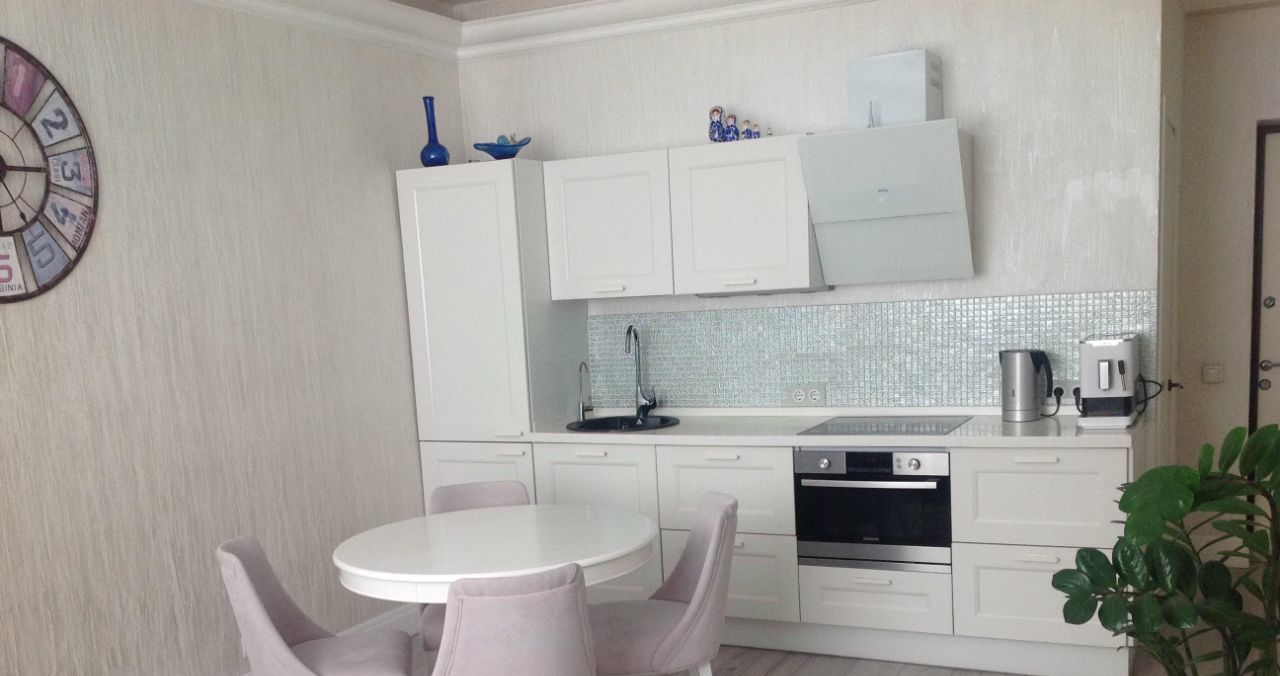 В квартире есть все необходимое для комфортного проживания. В кухне и комнате установлена современная мебель. Из техники — кондиционер, холодильник, посудомоечная машина, телевизор и стиральная машина. Санузел совмещенный, оборудован ванной. Также проведен интернет, поэтому вы всегда будете на связи.