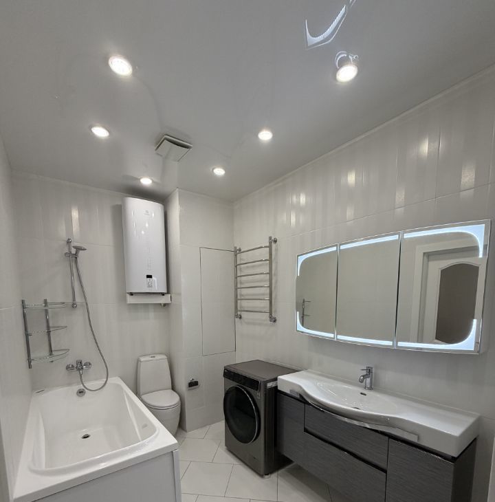 -Просторный совмещенный санузел, установлен бойлер Electrolux на 80 л;