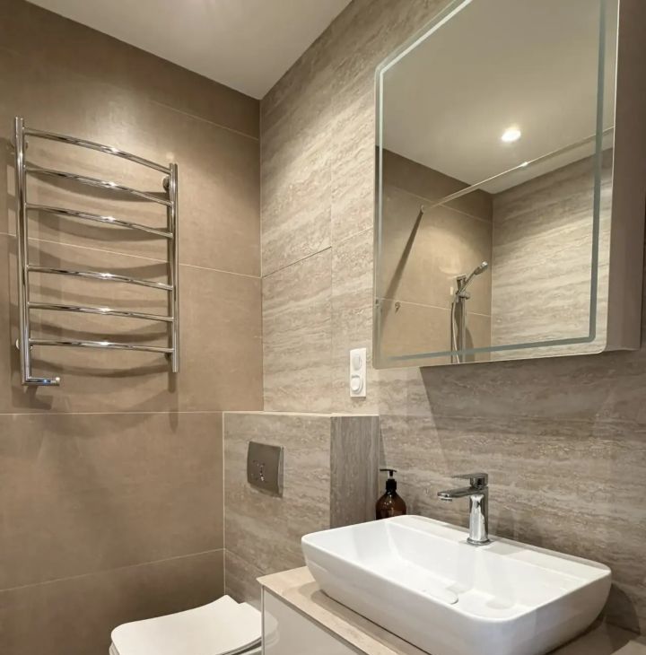 Выполнен хороший ремонт в приятных тонах.