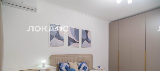 В спальне - телевизор, кондиционер, двухспальная кровать с подъемным механизмом, большой шкаф-купе, просторная лоджия, которую также можно использовать для хранения вещей.
