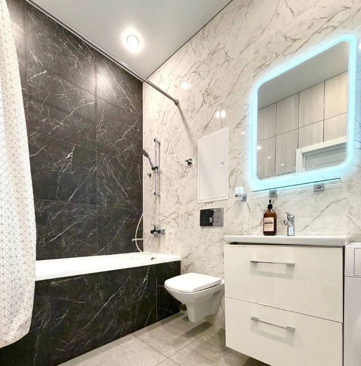 В апартаментах выполнен дизайнерский ремонт. Есть вся необходимая мебель и техника для комфортного проживания. Шумоизоляция на высшем уровне. Ухоженный закрытый двор с озелененными зонами отдыха, подземной и наземной парковками.
