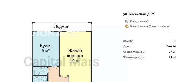 1-к кв. Москва Енисейская ул., 12 (37.0 м²)
