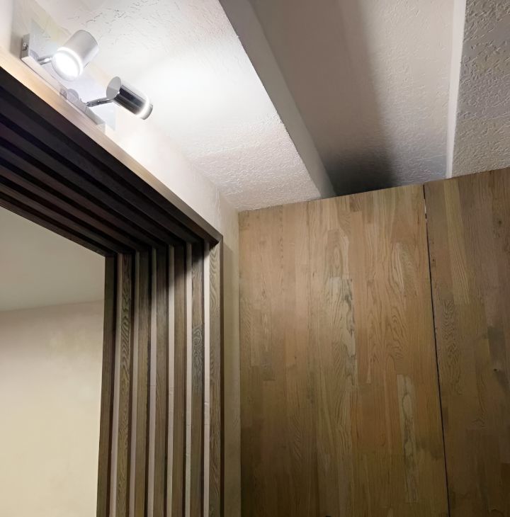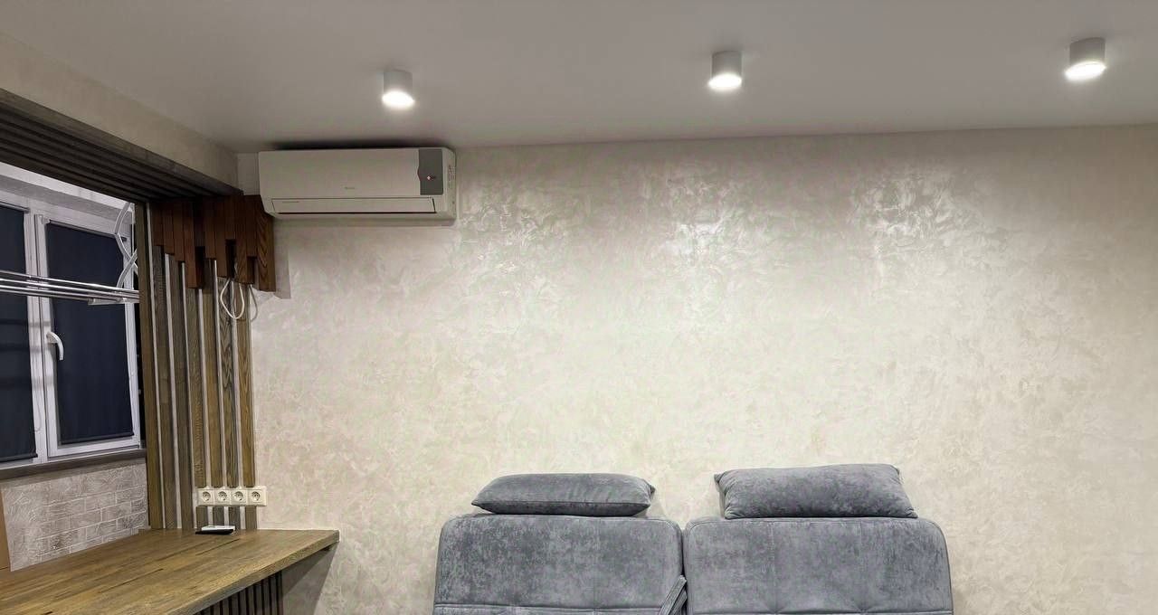 Комнаты: Есть гардеробная, большая двуспальная кровать, диван, кондиционер, точечно освещение