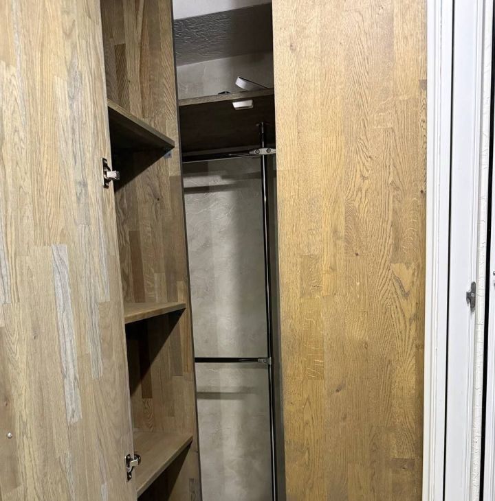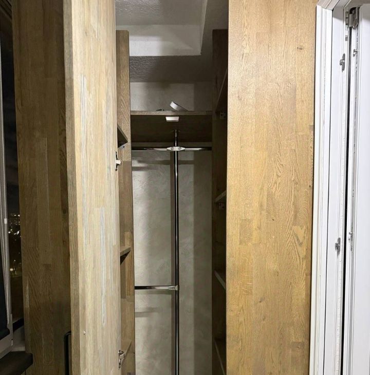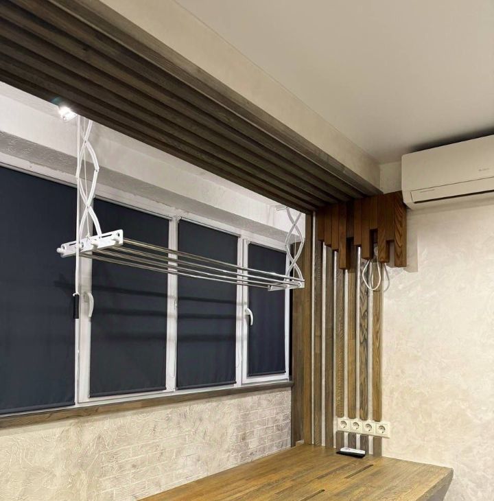 Лоджия утеплена, пол с подогревом, установлен дополнительный шкаф, потолочная система для сушки