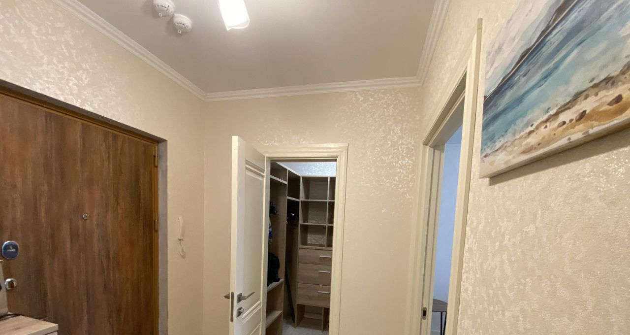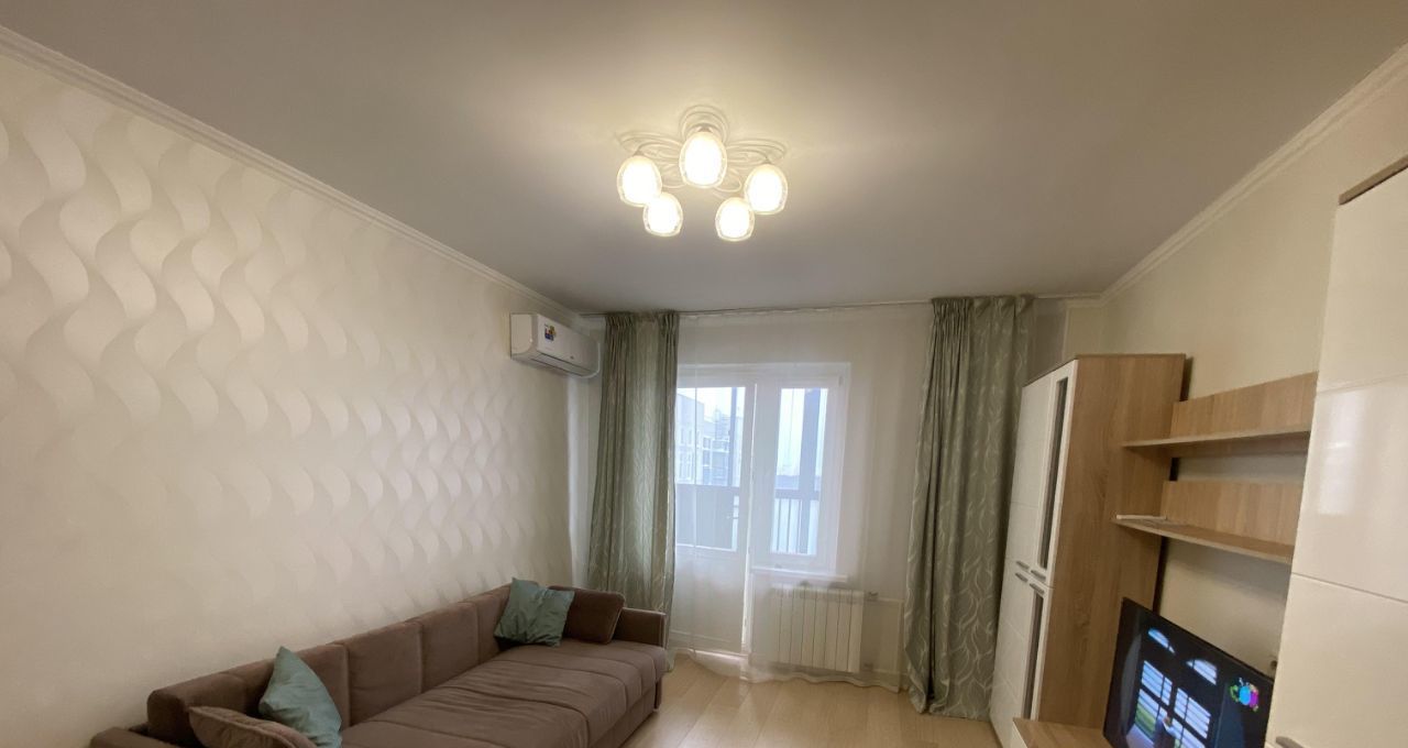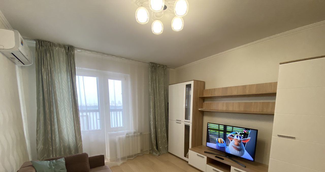 Предлагается уютная квартира в отличном состоянии. Новый современный жилой комплекс, до метро пешая доступность. Квартира полностью оборудована мебелью и техникой, все для комфортного проживания в наличии. Просторная кухня со встроенным кухонным гарнитуром, в комнате мебельная стенка и раскладной диван. Есть кондиционер. Для хранения вещей имеется гардеробная комната. Квартира свободна и готова к заселению. Предложение для 1 человека или пары. Строго без детей и животных. Показы по договоренности. Ключи на руках.