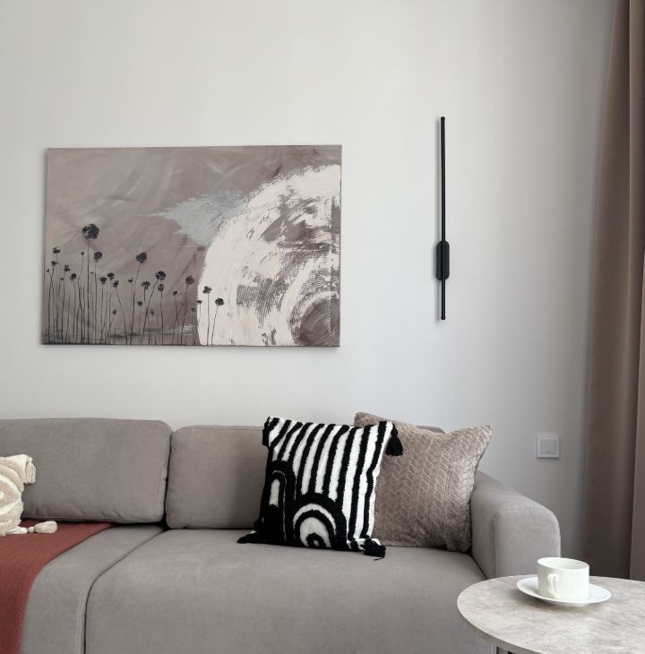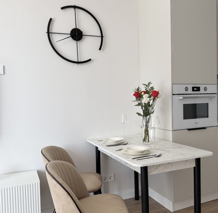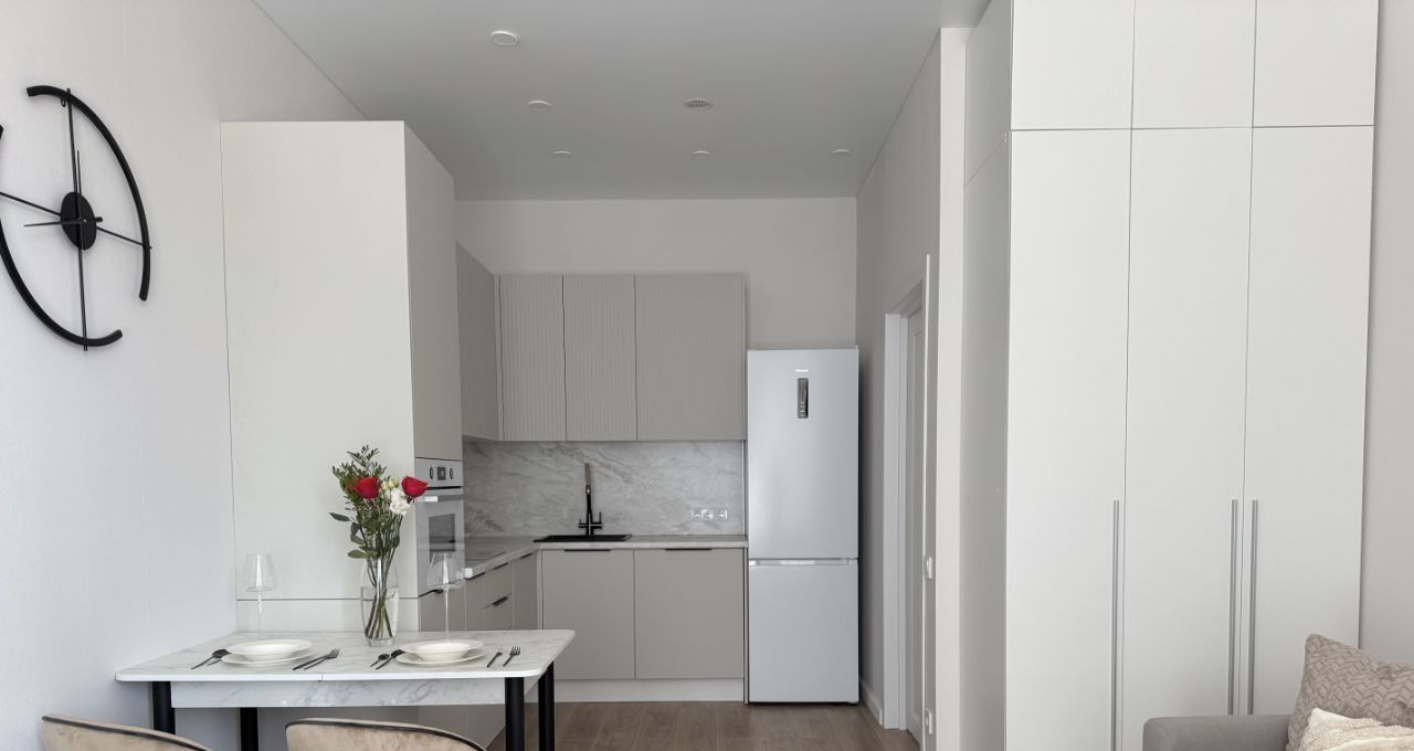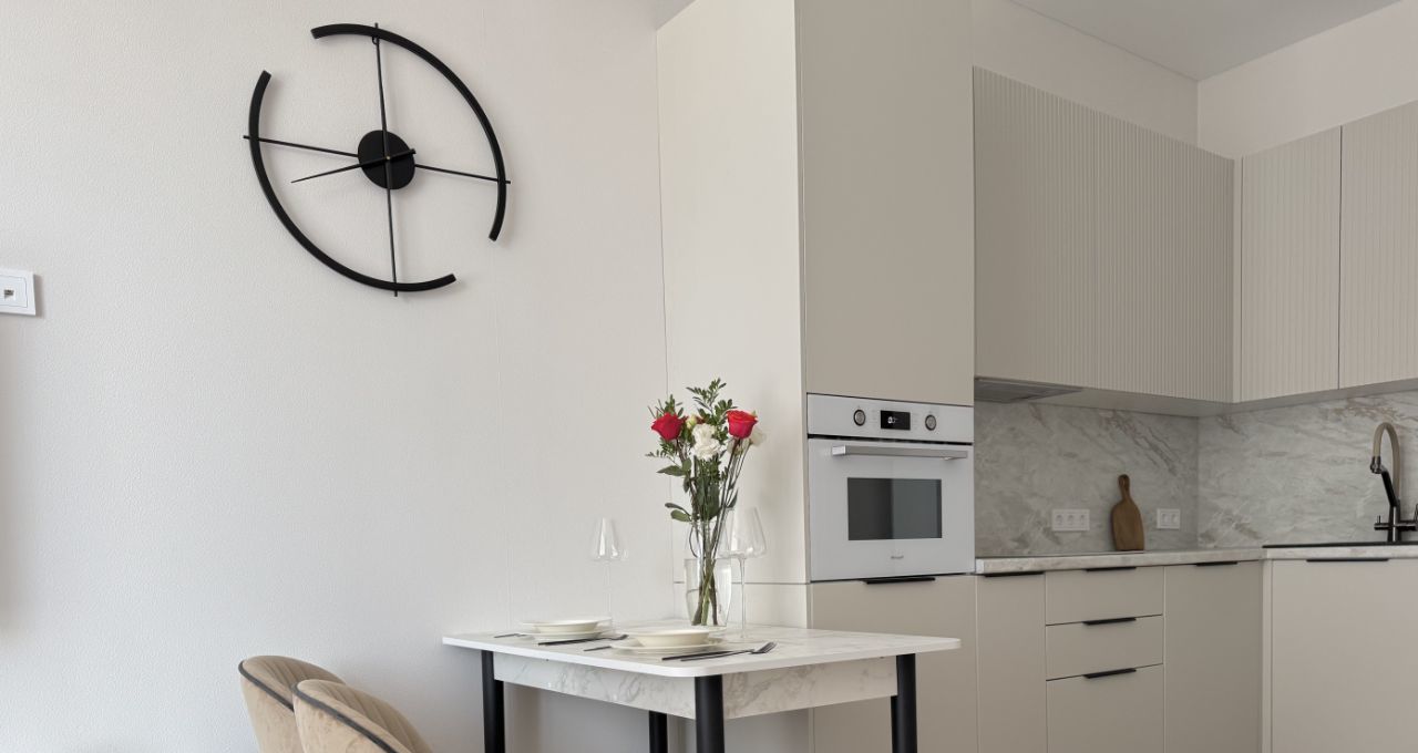 Квартира полностью готова к проживанию, просторная кухня гостиная и изолированная спальня — выполнен качественный дизайнерский ремонт, есть вся необходимая мебель и техника.