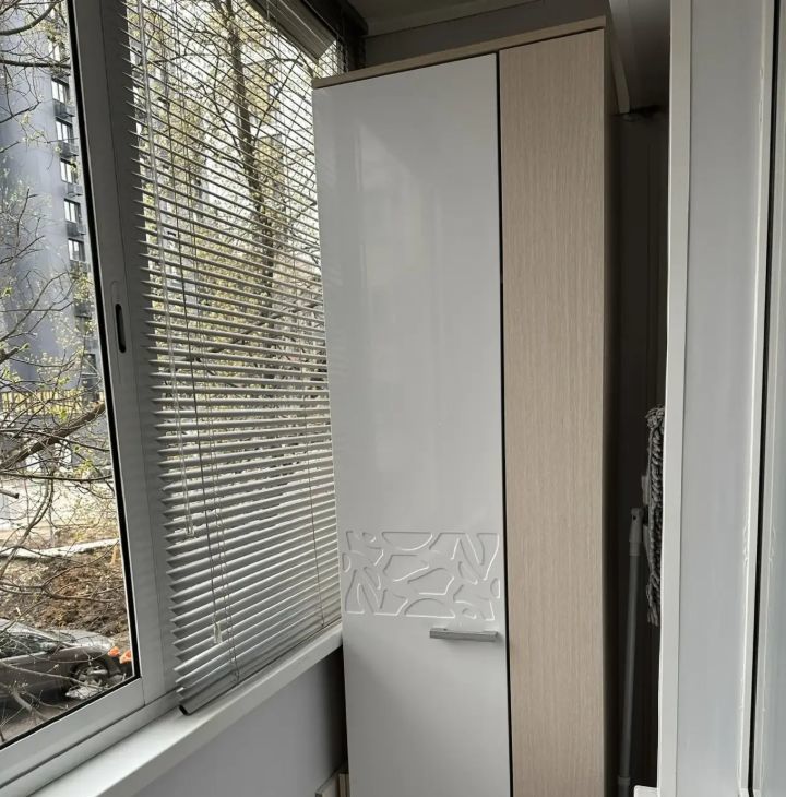 большой и вместительный шкаф-купе в комнате и дополнительные места хранения на застекленной лоджии