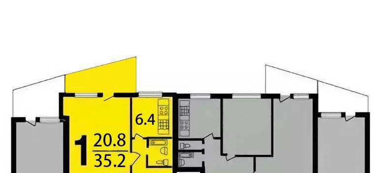 - Редкая площадь комнаты: Жилая площадь 20,8 м²! Это больше, чем в большинстве современных новостроек. Кухня 6,4 м², общая площадь 35,2 м².