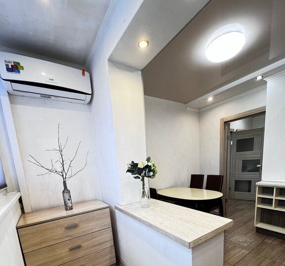 В аренду предлагается шикарная 1-комнатная квартира. В квартире выполнен свежий косметический ремонт. Кухня с обеденной зоной объединена с теплой лоджией, в спальной комнате раскладной диван с матрасом, вместительный шкаф купе, совмещенный санузел с ванной, прихожая. Много мест для хранения вещей. В доме выполнен ремонт внутренних коммуникаций и наружных фасадов, так же устанавливается шлагбаум, парковка во дворе для жильцов.
