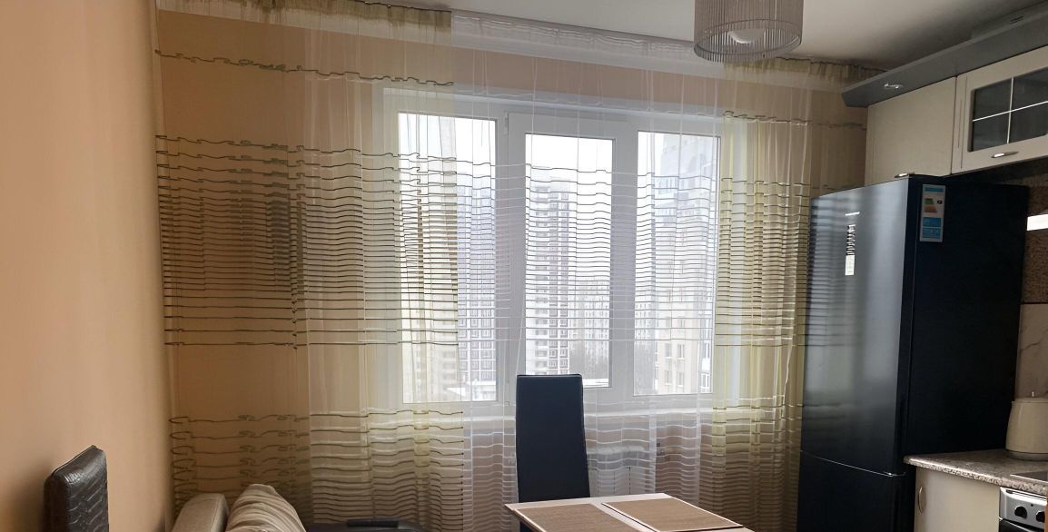Предлагается в аренду уютная однокомнатная квартира площадью 39 кв. м на 11 этаже 22-этажного дома. Дом построен в 1984 году и находится в районе метро Мнёвники. До станции можно дойти пешком за 14 минут. Квартира с евроремонтом, имеет потолки высотой 2,64 метра, что создает ощущение простора.