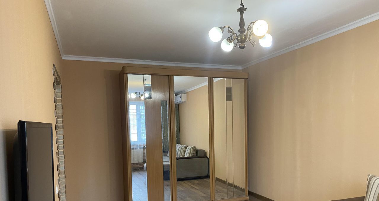 В квартире есть все необходимое для комфортного проживания: кондиционер, холодильник, телевизор и стиральная машина. Просторная кухня и комната полностью меблированы. Санузел раздельный, в ванной установлена ванна. Окна выходят во двор, поэтому в квартире тихо и спокойно. Подключен интернет, что удобно для работы и развлечений.
