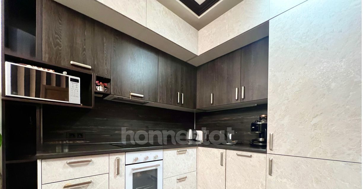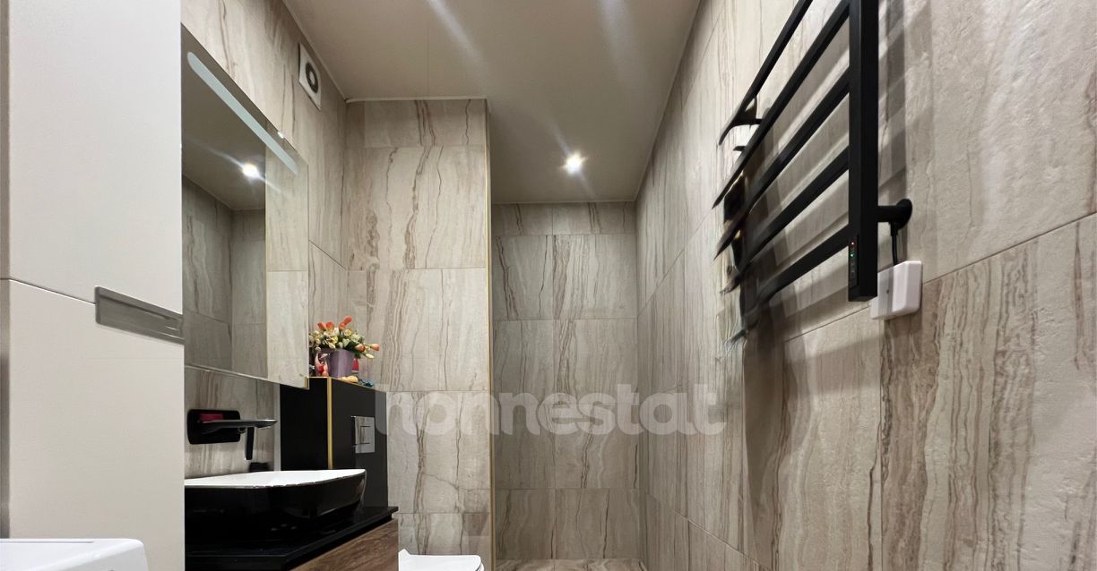 Квартира с дизайнерским ремонтом: стильная и функциональная. Просторная кухня площадью 15 кв. м полностью оборудована современной техникой — холодильник, посудомоечная машина и стиральная машина. В комнате есть мебель, а также установлен кондиционер и телевизор. Окна выходят во двор, поэтому в квартире всегда тихо и спокойно. Санузел совмещённый и оснащён душевой кабиной.
