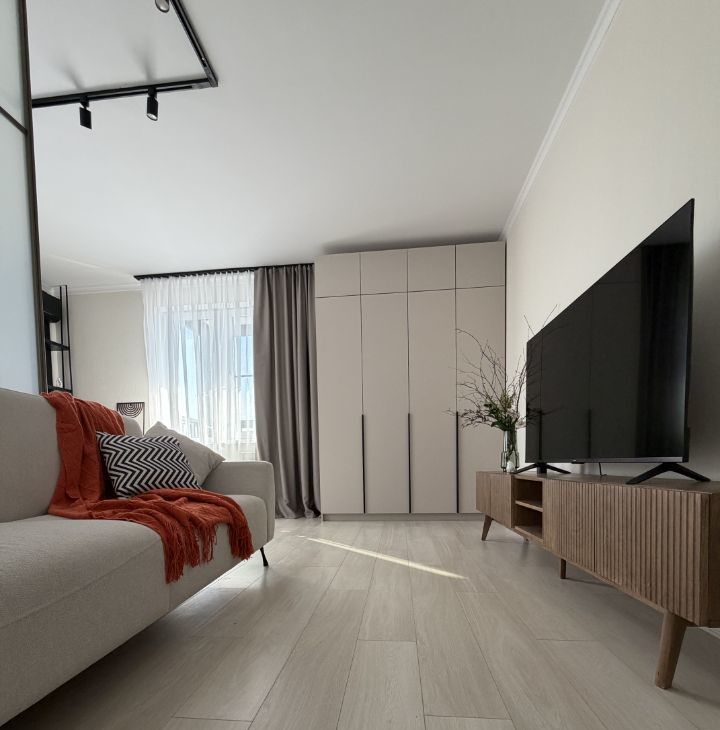 Светлая и просторная квартира в новом доме 2024 года постройки, дом сдавался с отделкой, поэтому шума от ремонтных работ нет. Квартиру комплектовали изначально для себя, старались продумать все для комфортного проживания. Стиральная машина с сушкой, широкая посудомоечная машина, духовой шкаф, кондиционер, установлены фильтра для питьевой воды. Хорошо продумано зонирование: спальное место с ортопедическим двухсторонним матрасом, зона ТВ, рабочая зона и зона релакса на лоджии с шикарными видами на Останкино и ботанический сад. Метро в 2-3 минутах от дома, вся необходимая инфраструктура тоже в шаговой доступности, до ботанического сада 10 минут пешком. Район тихий, спокойный со своим колоритом, старых кирпичных домов, которые создают особую приятную атмосферу.