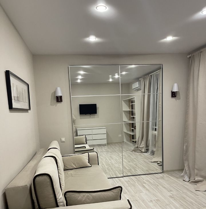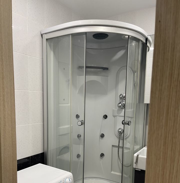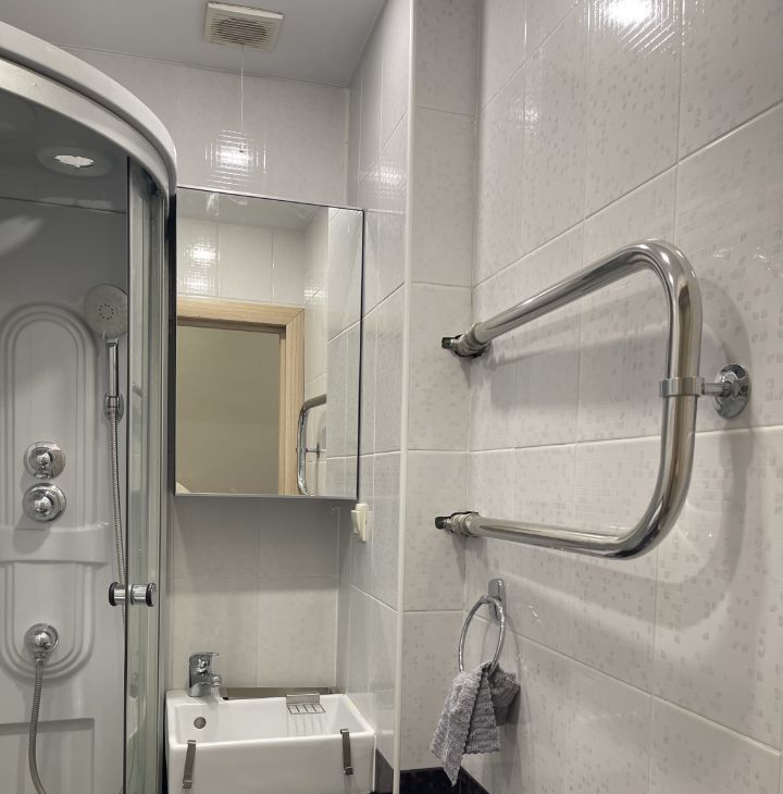 В квартире сделан современный евроремонт. Здесь есть все необходимое для комфортного проживания:, из техники — кондиционер, холодильник, телевизор и стиральная машина, духовой шкаф, микроволновая печь. Санузел изолированный, в ванной душевая кабинка. Балкон из комнаты. В подъезде работает пассажирский лифт, а на территории дома имеется наземная парковка.