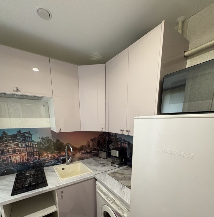 Кухня - кухонный гарнитур, холодильник, газовая варочная панель, микроволновая печь, стиральная машина. Так же планируем купить духовой шкаф!