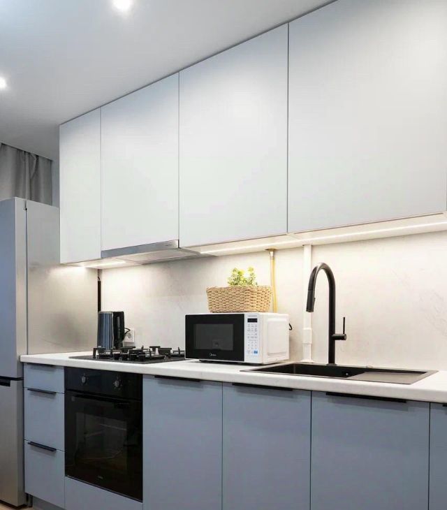 Сдается уютная квартира с дизайнерским ремонтом на длительный срок. В квартире есть все необходимое для комфортного проживания: кондиционер, холодильник, стиральная машина и микроволновая печь. Просторная кухня оборудована современной техникой и обеденной зоной.