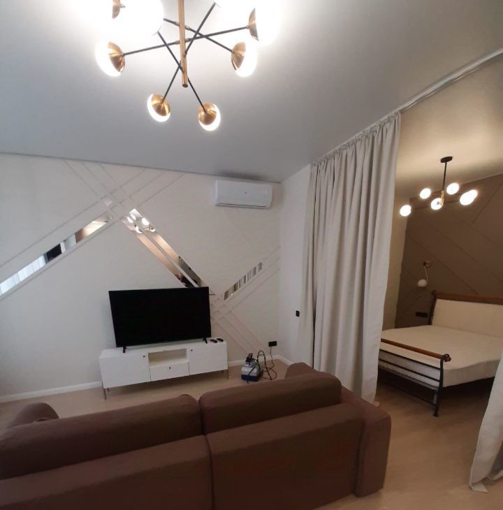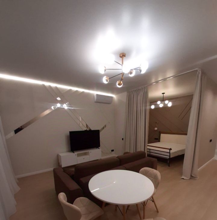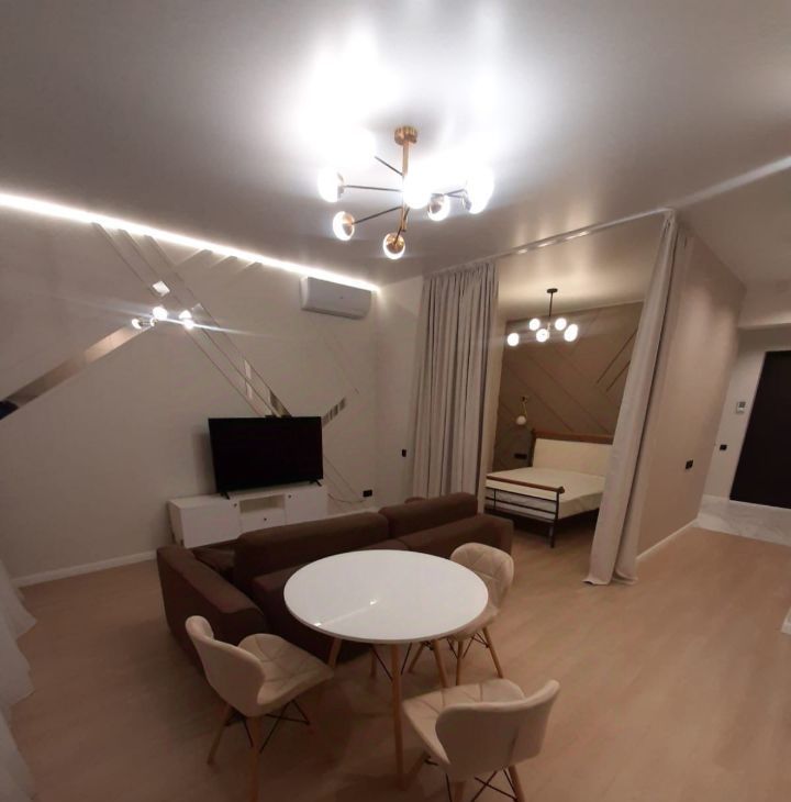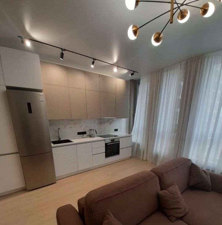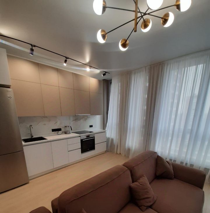 Сдаётся квартира-студия в ЖК ONYX Delux, c панорамными окнами и высокими потолками. Кухня-гостиная в едином пространстве, спальня, санузел с душем. Укомплектована мебелью и бытовой техникой. Установлена посудомойка. Установлен кондиционер. Балкона нет. Встроенные гардеробные шкафы. Дизайнерский ремонт в современном стиле.