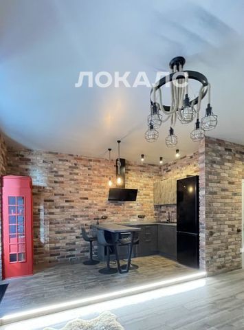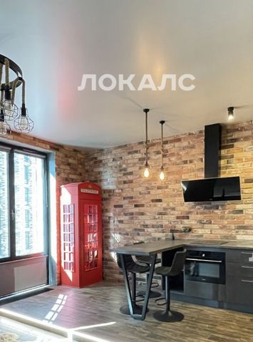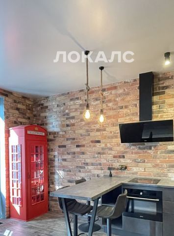 35 кв.метров просторное жилое пространство с встроенной кухней и баром в виде английской телефонной будки, встроенная кухня полностью укомплектованая европейской бытовой техникой (холодильник, духовой шкаф с функцией свч, плита, вытяжка, пмм).