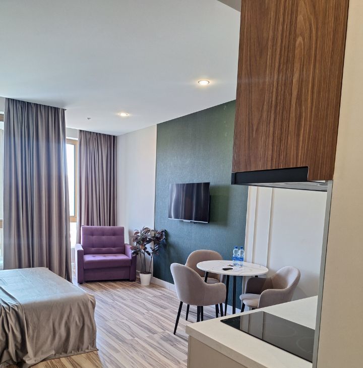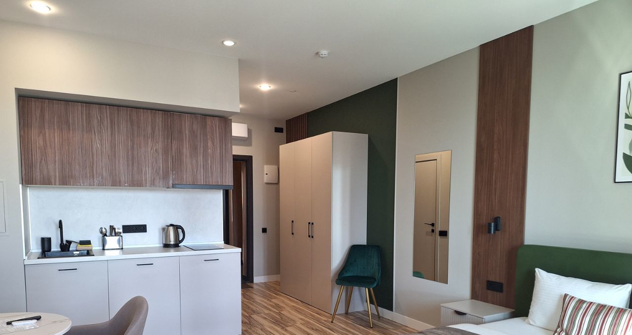 Продаются апартаменты с дизайнерским ремонтом в монолитном доме 2017 года постройки. В 3 минутах от метро ЦСКА с развитой инфраструктурой. Просторная комната с большим окном, выходящим на улицу, создает ощущение простора и света. В квартире есть удобная кровать и вместительный шкаф. Кухня оборудована современной техникой и обеденной зоной. Совмещенный санузел выполнен в современном стиле с качественной сантехникой.