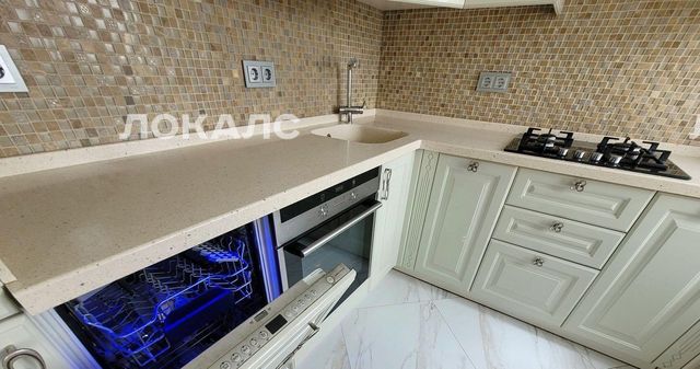 - кухня-гостиная ~ 16 кв.м. - встроенный кухонный гарнитур (массив с качественной фурнитурой) под единой КАМЕННОЙ столешницей и ВСЕЙ техникой премиальных марок (посудомоечной машиной, газовой варочной панелью, электрическим духовым шкафом, вытяжкой, двухкамерным холодильником) с подсветкой рабочей поверхности, обеденной (стол, стулья) и зоной отдыха: ОЧЕНЬ УДОБНЫЙ мягкий кожаный диван напротив ТВ. Смеситель оборудован ФИЛЬТРом для питьевой воды!