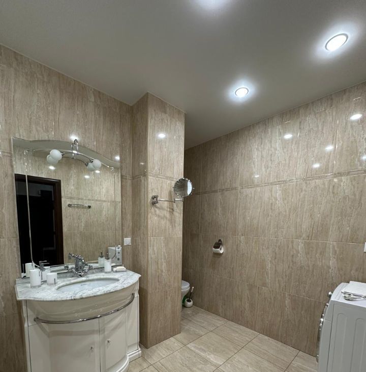 Большая гардеробная, функциональный диван 8 марта с ортопедическим матрасом. Кондиционер. Просторная ванная комната. Шикарный вид из окна. В доме можно снять паркинг. Имеется все необходимое для проживания, в том числе гладильная доска, утюг, посуда.