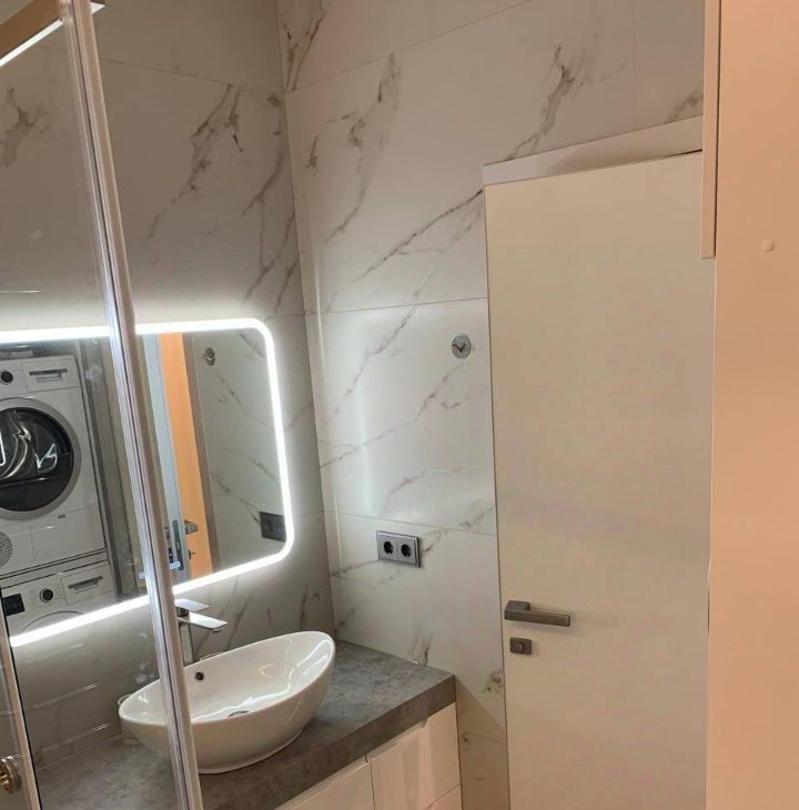 ЖК Династия 1-к 46 кв.м. с видом на тихую улицу (5-я магистральная). В квартире никто не проживал (только после ремонта). Дизайнерский ремонт. Стеновые панели с натуральным шпоном дуба, ясеня и пробкой, трековое освещение, декоративный свет, парящий потолок с подсветкой, скрытые двери. Теплые полы, карниз и кондиционеры с управлением по wifi. Двуспальная кровать с ортопедическим матрасом, туалетный столик, шкаф и 65 tv в комнате. Гостевой диван-трансформер , 50 tv, встроенная техника (Aeg, Bosch, Electrolux) на кухне. Душевая кабина, стиральная и сушильная машины (Bosch) в с/у. Система защиты от протечек, резервный проточный электроводонагреватель. Отдельная гардеробная, балкон.