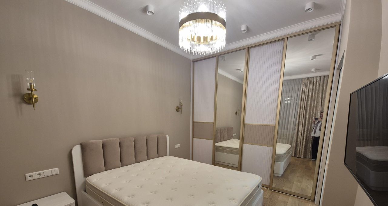 ЖК Династия. Выполнен дизайнерский ремонт. Просторная кухня-столовая, представлена вся бытовая техника. Диван раскладывается . Спальня : Двухспальная кровать, шкаф купе во всю стену. В квартире имеется 2 телевизора, кондиционер. С/узел совместный с ванной. Стиральная машина с функцией сушки. В прихожей встроенный шкаф купе. Сдается на длительный срок.
