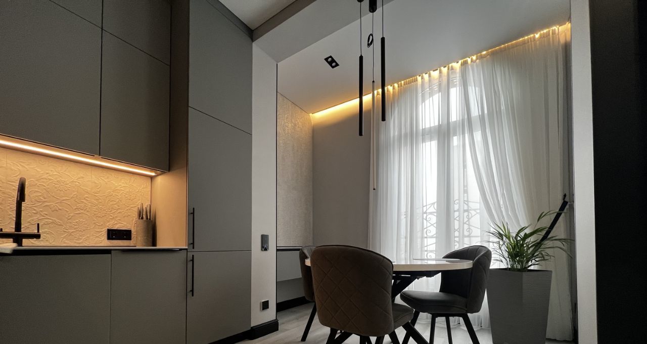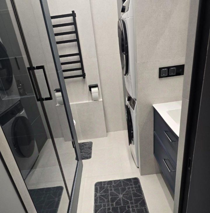 Квартира полностью укомплектована современной мебелью и бытовой техникой.