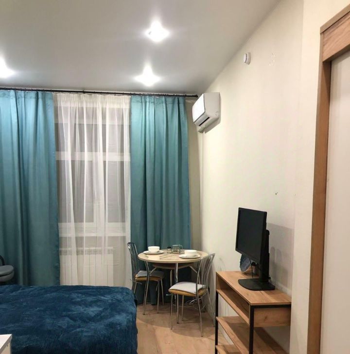 Квартира с евроремонтом, полностью готова к проживанию. В студии есть вся необходимая мебель как в комнате, так и на кухне. Для вашего комфорта установлены кондиционер, холодильник, телевизор и стиральная машина. В ванной комнате - душевая кабина и совмещённый санузел.