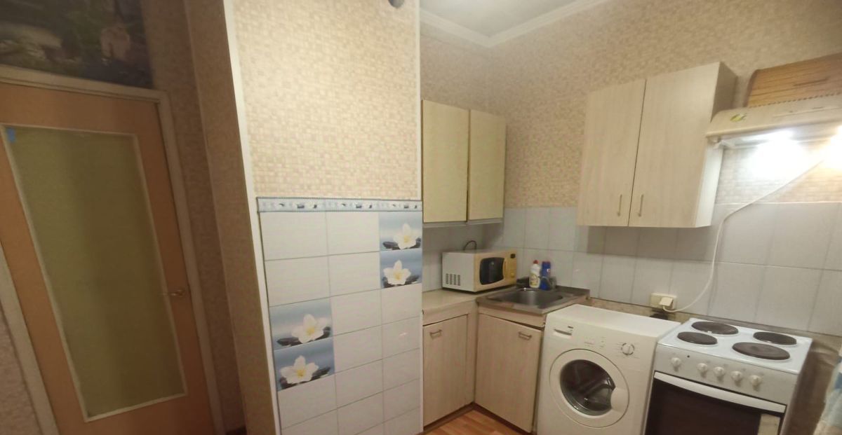 Квартира после косметического ремонта. Удобная планировка: в комнате и на кухне есть вся необходимая мебель. На кухне также имеется холодильник, а в ванной — стиральная машина и ванна. Санузел совмещённый. Приятным дополнением является наличие мусоропровода, что делает проживание ещё более комфортным.