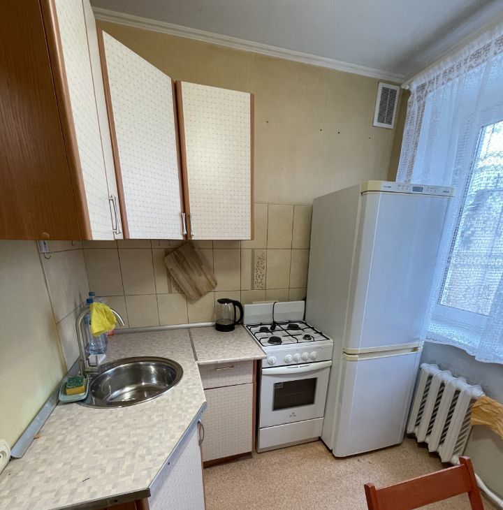 сдается однокомнатная квартира, рядом с метро. двуспальная кровать, диванчик (не раскладывается) обеденный стол, чайник, газовая плита.