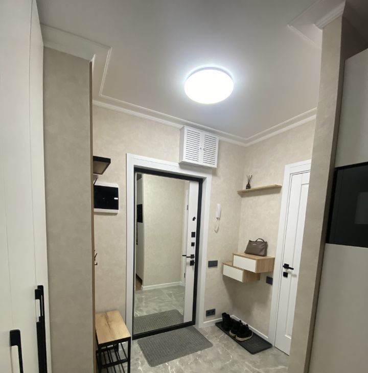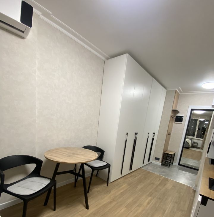 Сдается впервые очень уютная 1-комнатная квартира 28м3. Находится на 21 этаже 25-этажного нового ЖК. С панорамными видами на закат. В квартире сделан дизайнерский ремонт. Имеется вся необходимая мебель с большим пространством для хранения. Современная кухня,оборудованная новой техникой(встроенный холодильник, встроенная СВЧ, 2-х конфорочная индукционная варочная панель, посудомоечная машина,вытяжка). Также имеется кондиционер, стиральная машина, пылесос, гладильная доска и утюг.